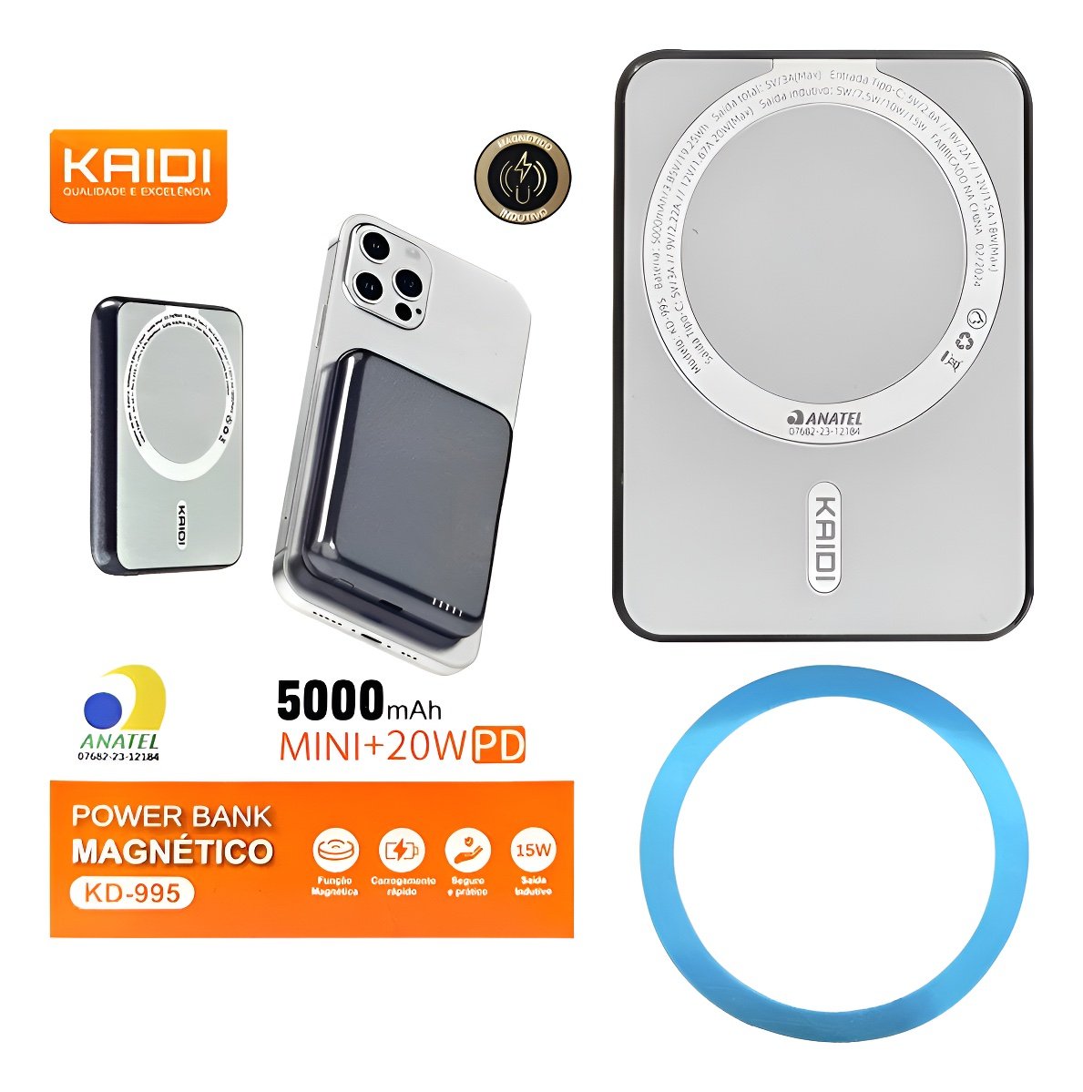 Carregador Portátil Indução Magnética 5000mah Power Bank Preto/branco