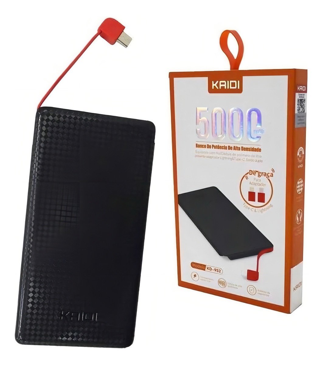 Carregador Portátil Kaidi 5000mah Usb Power Bank Kd-952 Branco/Preto
