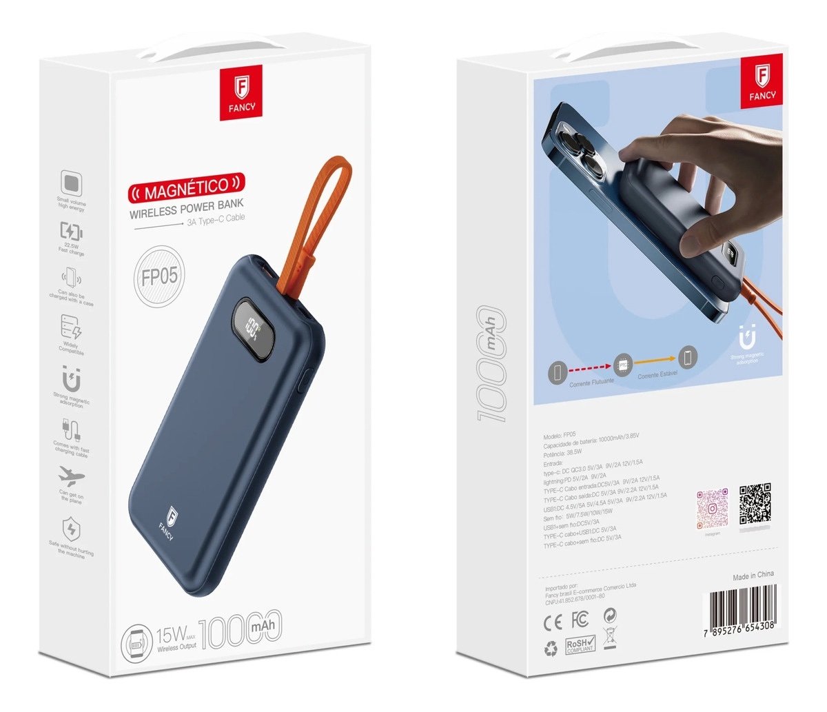 Carregador Portátil Fancy FP05 Wireless Tipo C 10.000mah