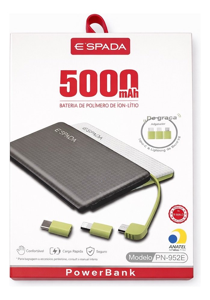 Carregador Portátil Pn-952e Espada Power Bank 5000mah Rápido