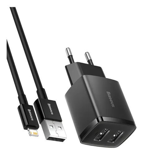 carregador BASEUS com 2 USB e cabo LIGHTINIG.