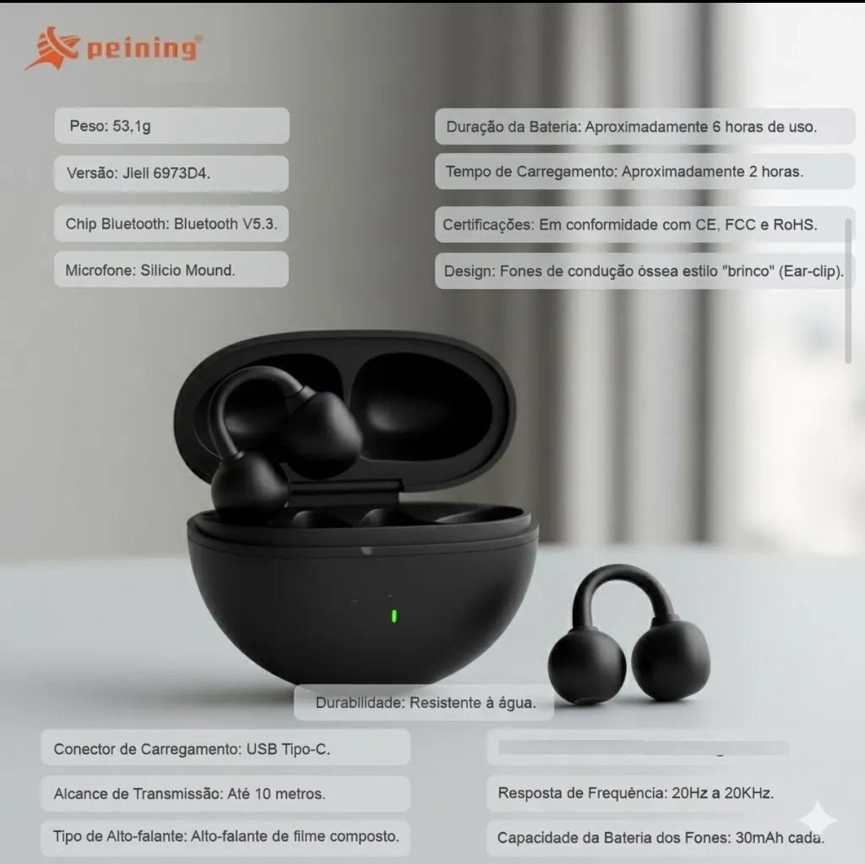 Fone tipo brinco bluetooth PEINING PEI-P102