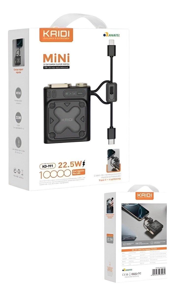 Mini Power Bank 10000mah Turbo Kaidi Portátil KD-991